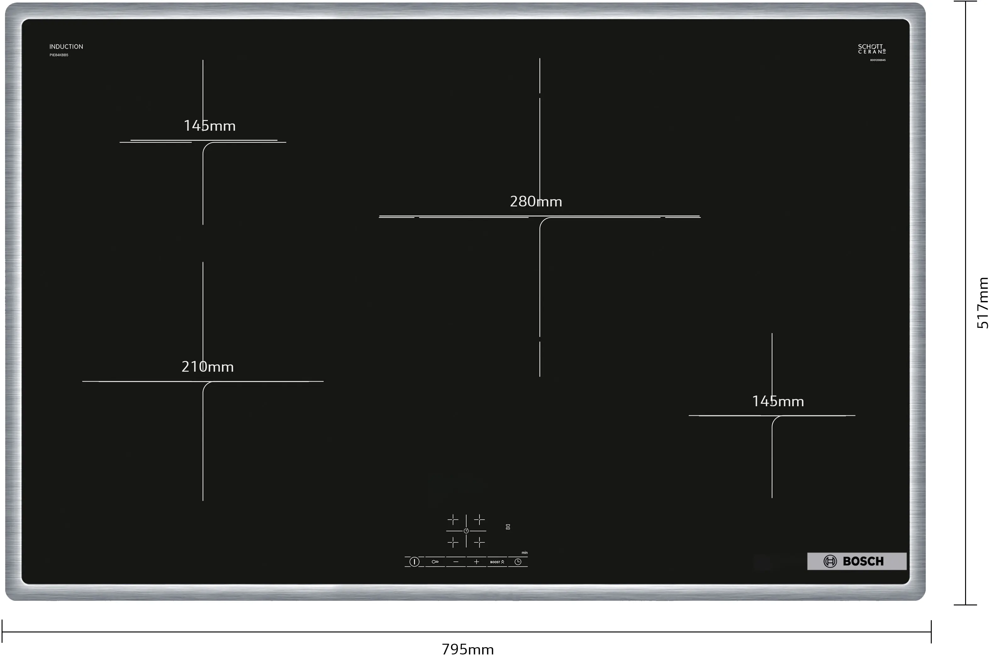 Série 4 induction hob 80 cm avec cadrePIE84KBB5E